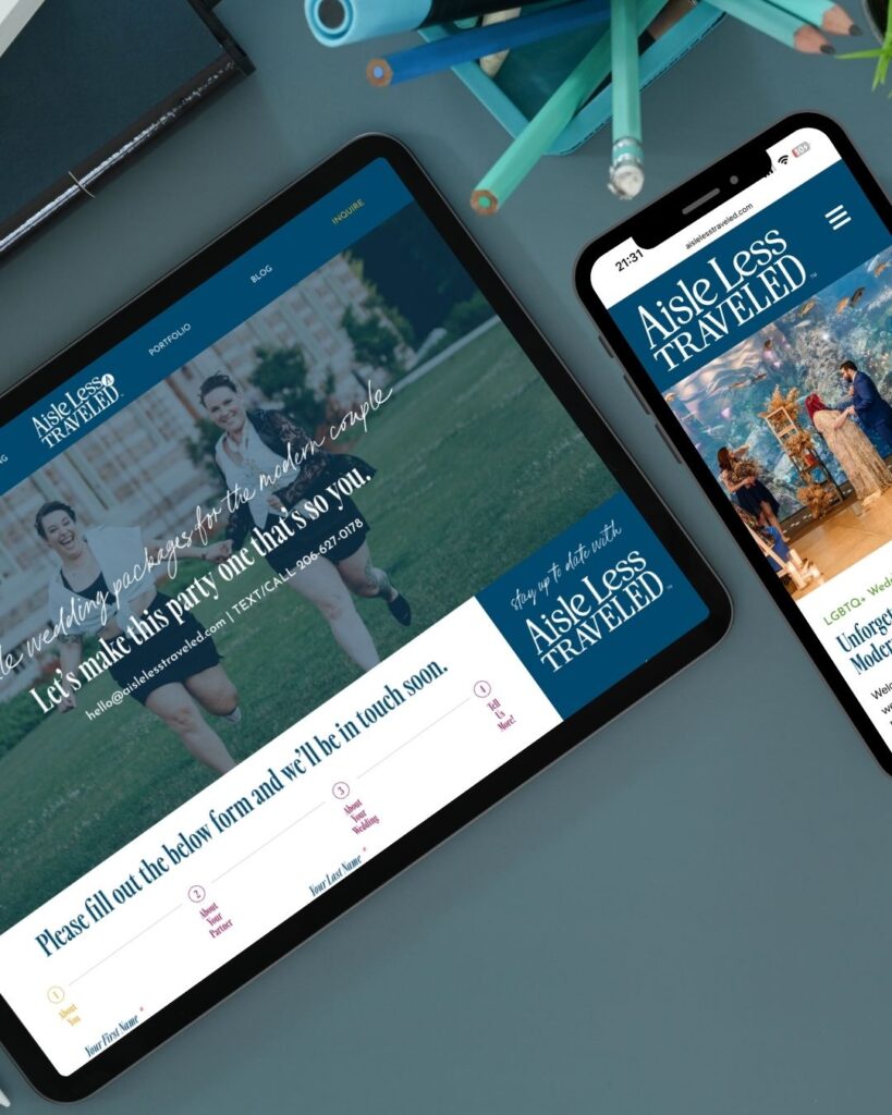 For Aisle Less Traveled, inclusivity is at the heart of everything they do. As a destination wedding planner who celebrates all love stories, their brand needed to feel both adventurous and welcoming. We created a design system that balances approachability with professionalism, mixing theatre-inspired elements with an editorial, elevated twist. The result is a brand that says, “Your love belongs here,” no matter where your aisle may be. View their WordPress website here.